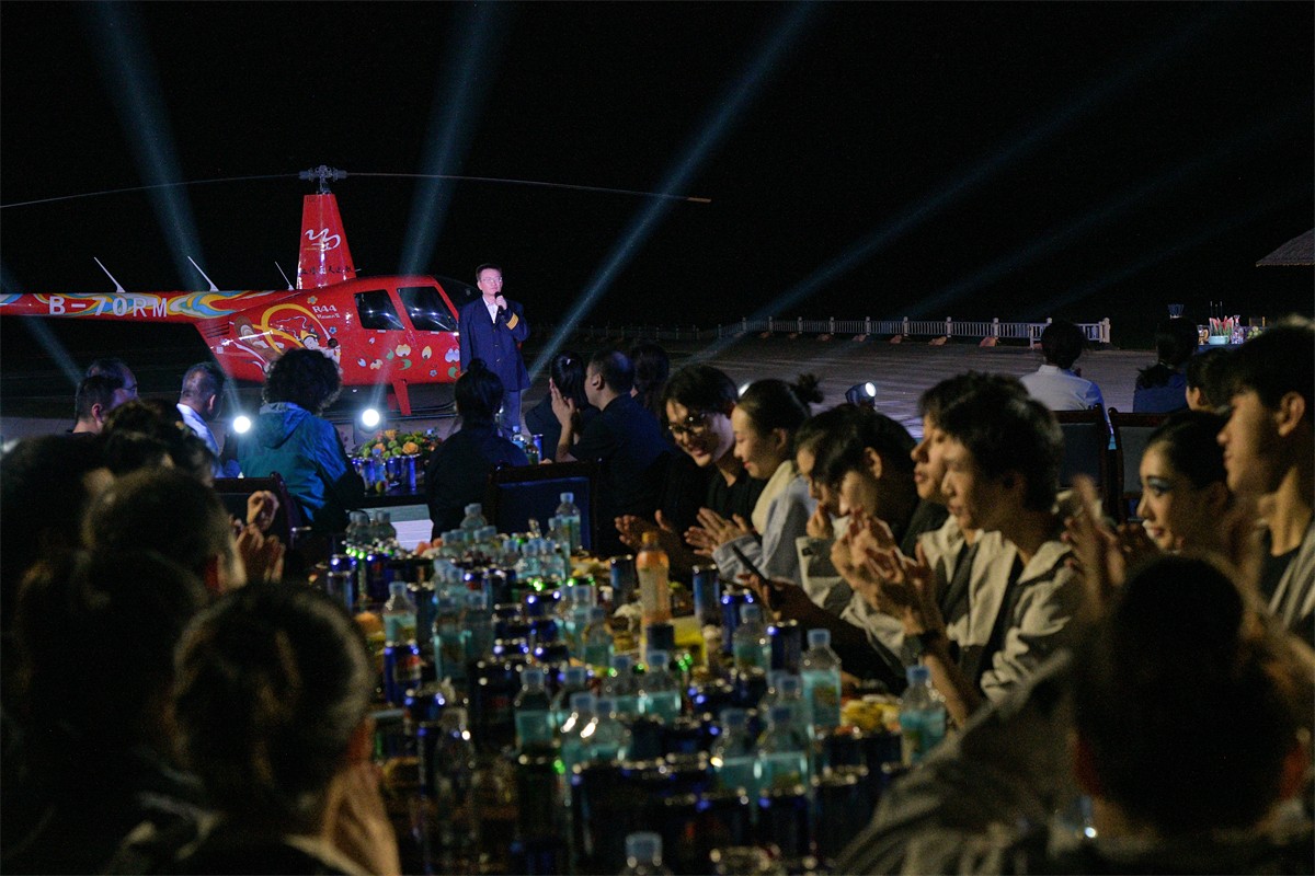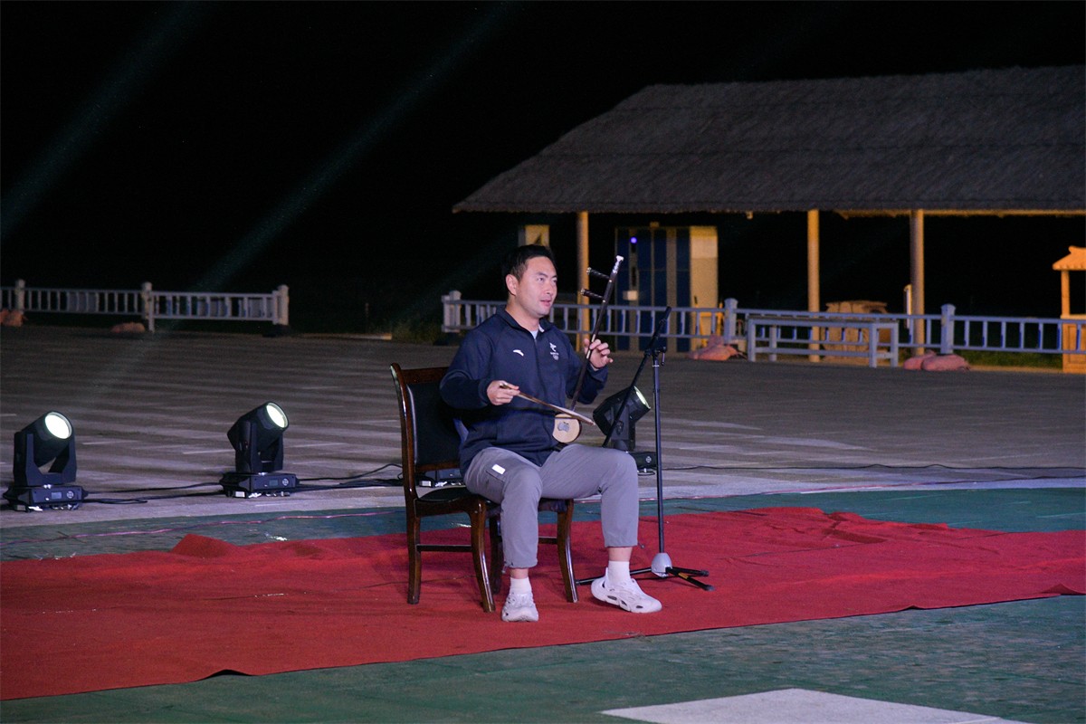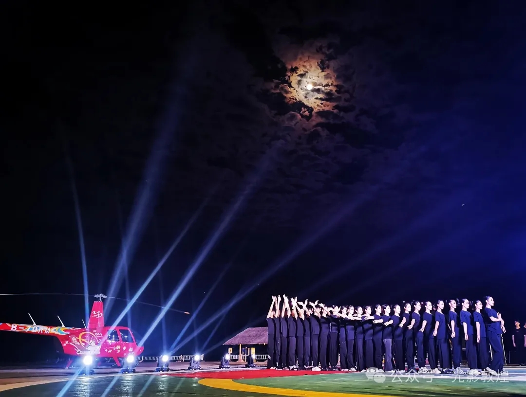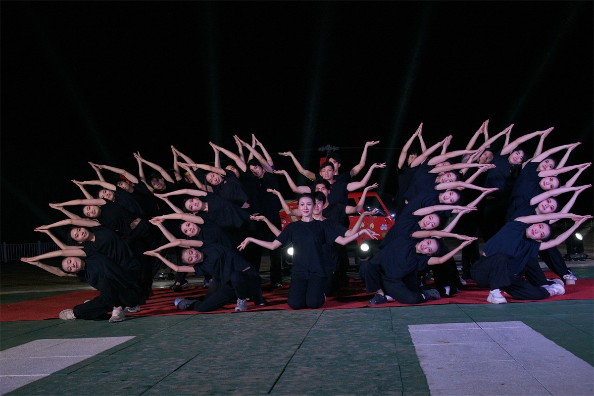 9月17日中秋佳节,花好月圆之日,敦煌市飞天通用航空有限责任公司携手中国残疾人艺术团音乐舞蹈剧《千手千眼》演职人员在敦煌月牙泉景区飞天通航停机坪开展了一次别开生面的中秋联谊演出活动。(王斌银 文/摄影)