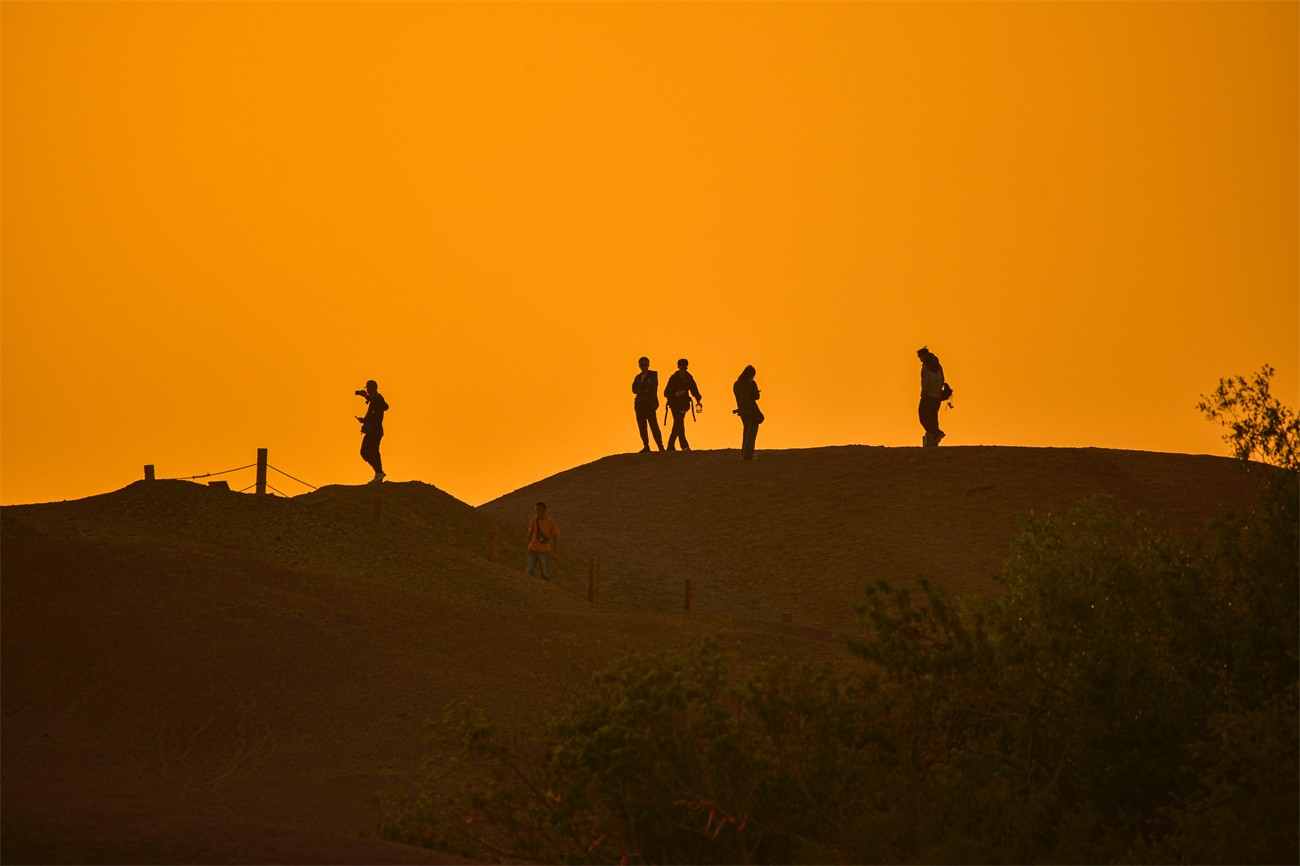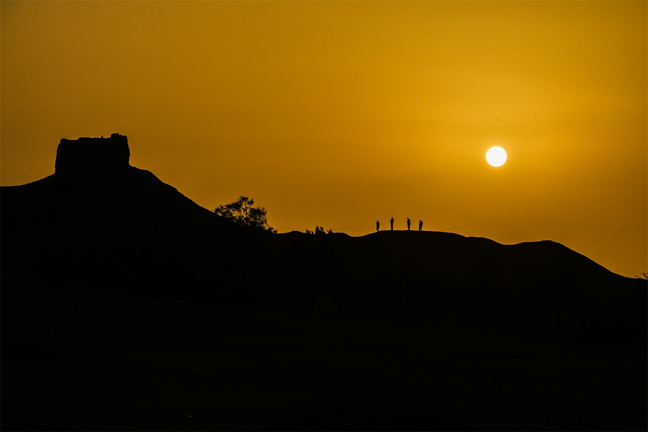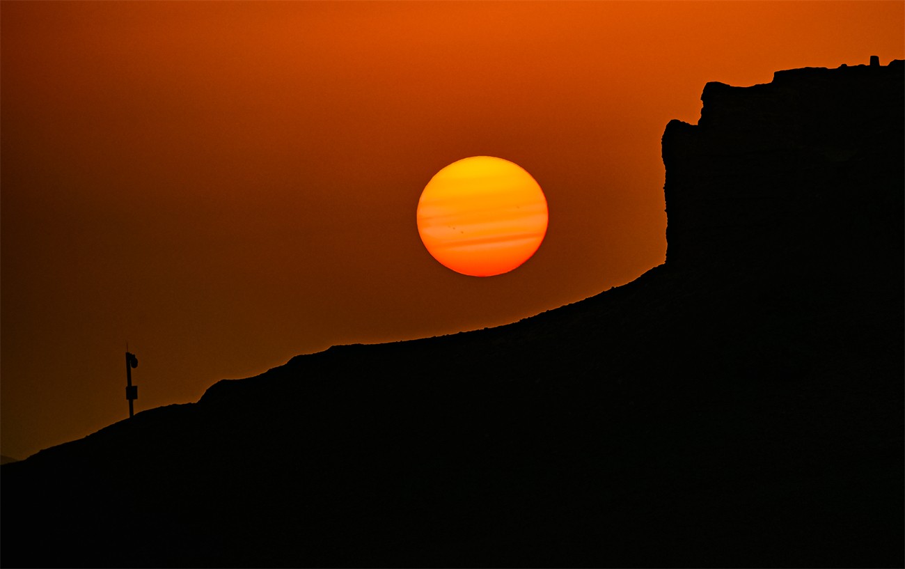 图为:2025年9月7日,敦煌阳关景区大漠落日壮美景象。(王斌银 摄影)