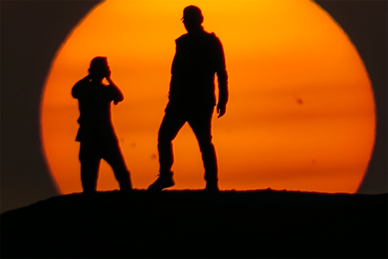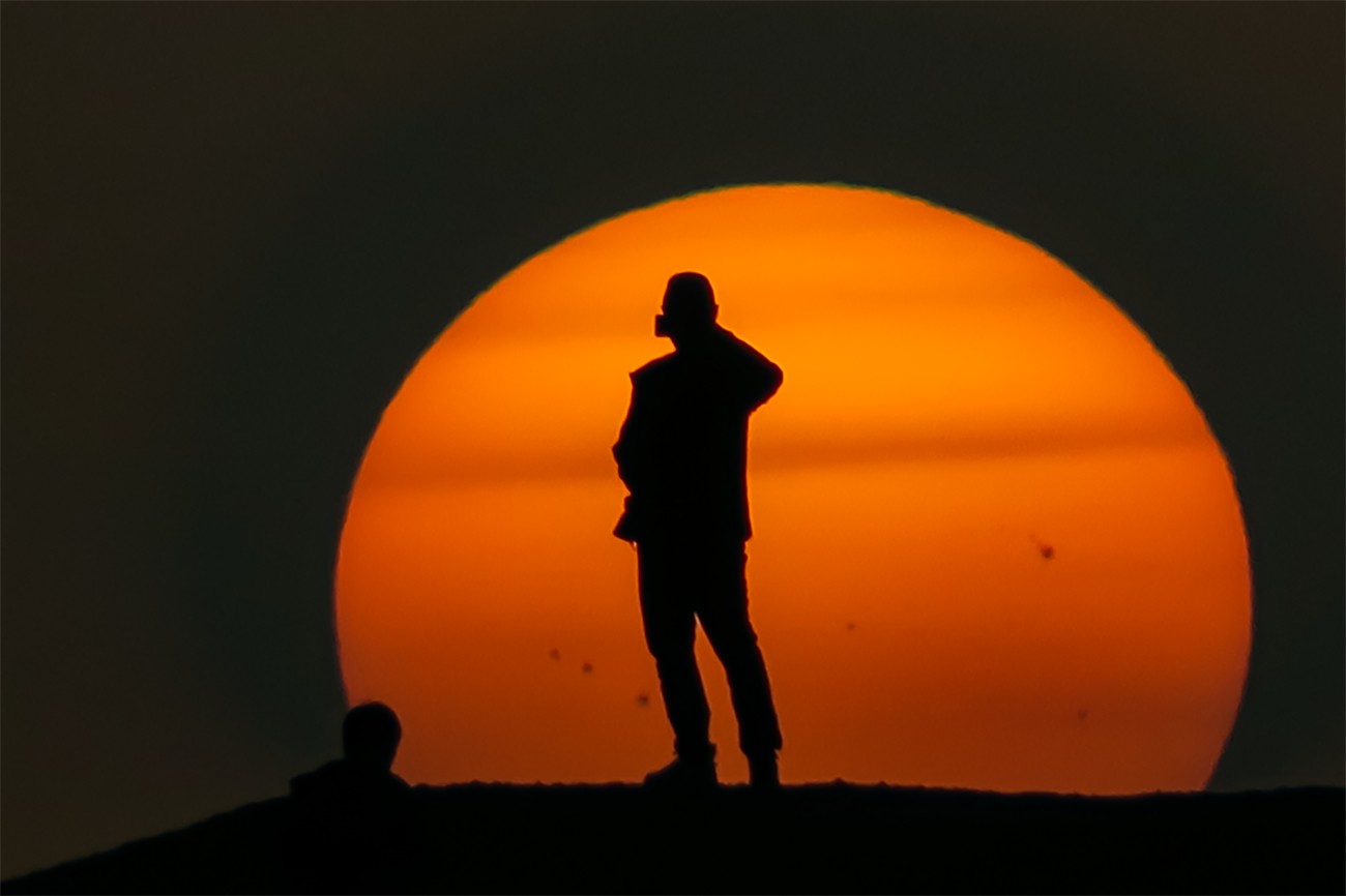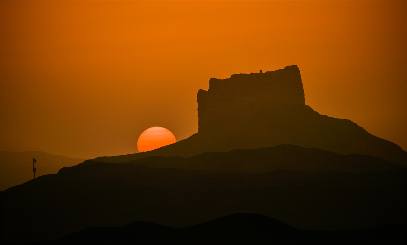 图为:2025年9月7日,敦煌阳关景区大漠落日壮美景象。(王斌银 摄影)
