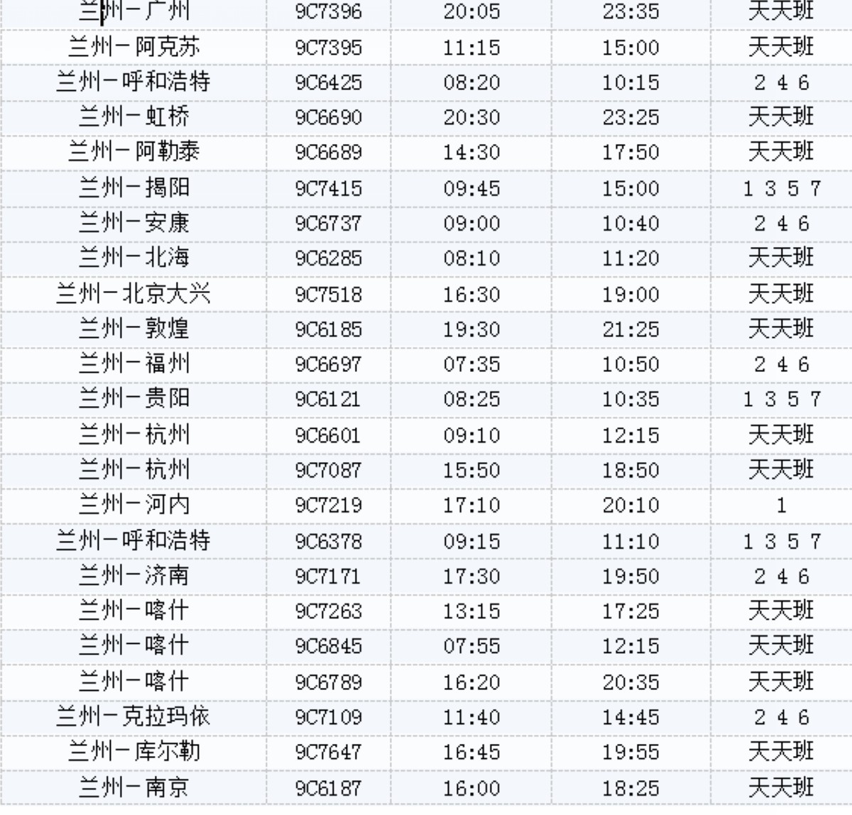 附:春秋航空兰州进出港航线时刻表供参考,具体班期请以春秋航空APP、小程序为准。
