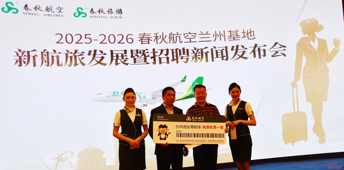 中国甘肃在线凉州讯 10月22日,春秋航空在兰州成功举办2025-2026年春秋航空兰州基地新航旅发展暨招聘新闻发布会。新航季,春秋航空将新开上海=兰州=和田、兰州=河内、兰州=清迈等3条航线。同时宣布,将在兰州首次开展客舱乘务员(空嫂)专项招聘,为已婚已育女性开启职业发展新篇章。