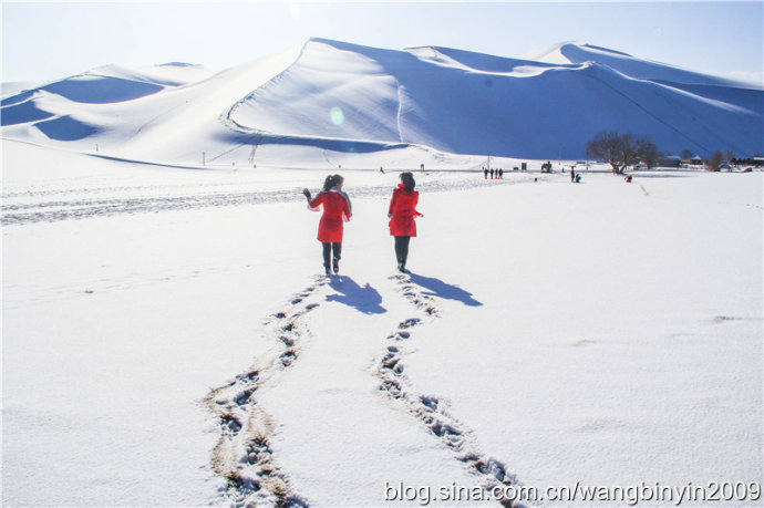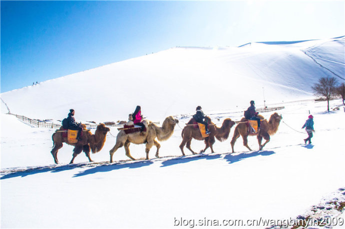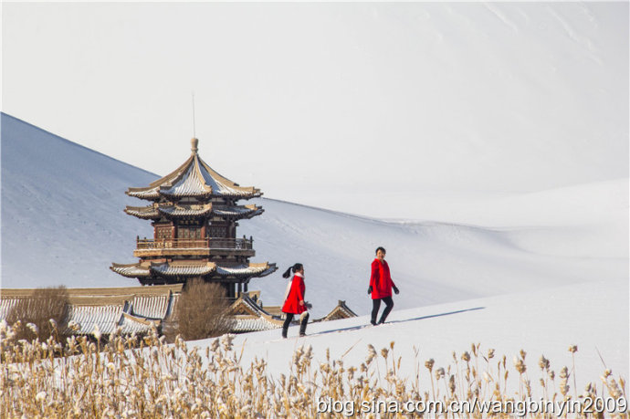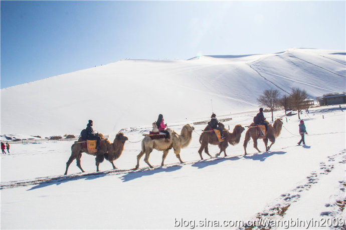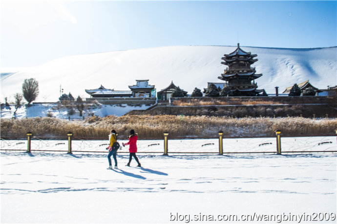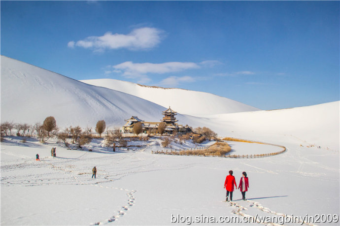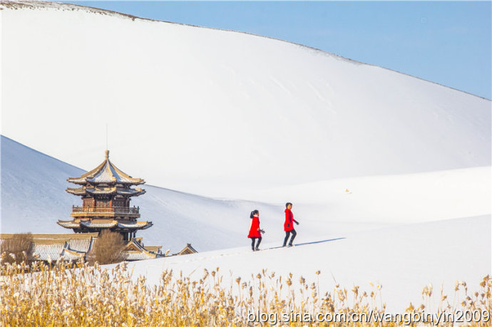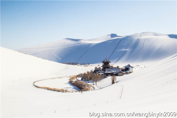 中国甘肃在线1月28日讯 1月21日至23日,2016年的第一场大雪降临古郡敦煌大地,敦煌境内成为一片白茫茫的冰雪世界。尤其是著名景区莫高窟、鸣沙山月牙泉被大雪覆盖后,景色犹如一幅幅清新靓丽的水墨山水画。游客因此喜出望外,沉醉在敦煌大漠美丽雪景之中。