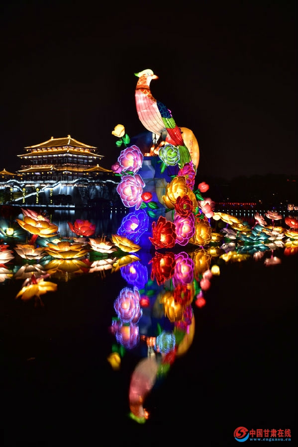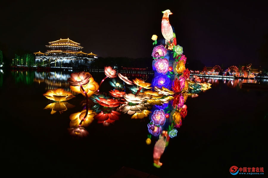 中国甘肃在线讯:(文/图:陈治平)古城西安,历史悠久,民俗多样,特别是春节文化活动更是热闹非凡。大唐芙蓉园“凤舞九天、盛世太平”第五届新春灯会精美绝伦。该灯会从2017年1月20日持续至2月28日(农历腊月二十三至二月初三),为期40天。每当夜幕降临,园内华灯璀灿,五颜六色,灯火辉煌,游人如织,数万市民前去赏灯,确着实让市民过足了眼瘾。
