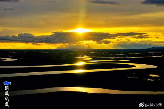 夕阳的余晖洒在每道河的河湾上,美丽万分。
