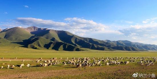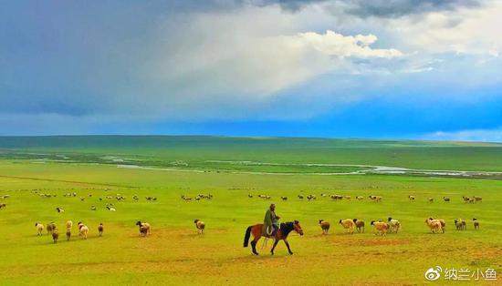 整个草原一望无际、绿草茵茵,满山遍野全是羊群。