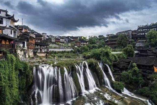 3、芙蓉镇本名王村,距今已有两千多年历史,曲折幽深的大街小巷,临水依依的土家吊脚木楼,青石板铺就的五里长街,一条小河沿着镇子的走向流淌,在汇入酉水时跌下悬崖,形成了壮观的芙蓉镇瀑布。
