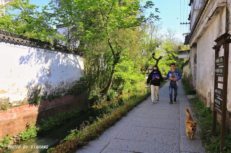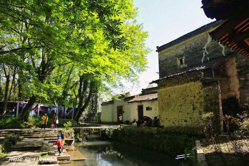村子旁的小溪,偶尔有游客带着小朋友在溪里戏水,村子不大,沿着小溪走一圈,不到一小时就可以走完。村子里保留了好几栋明清时候的徽派建筑,青瓦白墙,石板路,你会发现一天就这么惬意的过去了。
