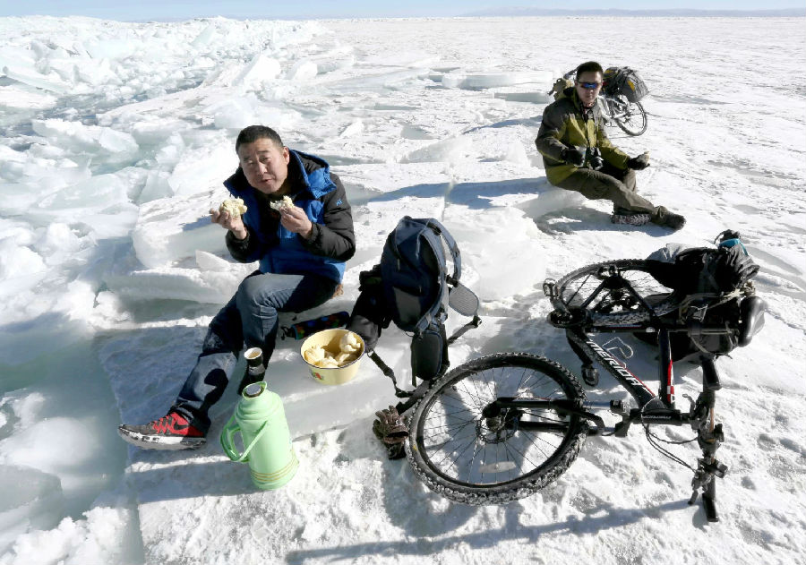 连续三年走进青海湖的冬季,今年是由兰州紫影志行社提供五辆最新自行车,由我们五位摄影人分别骑行HASA自行车在冰雪飞扬,在冰封湖面,经过10个小时骑行走进湖心岛,在冰面上、在寒风呼啸中拍摄纪录大美青海湖,才能认识到一个完整冬季青海湖,才能领略感悟到高原圣湖的全部精气神儿。那种大自然美的感觉是无法用语言----!(摄影:梁剑)