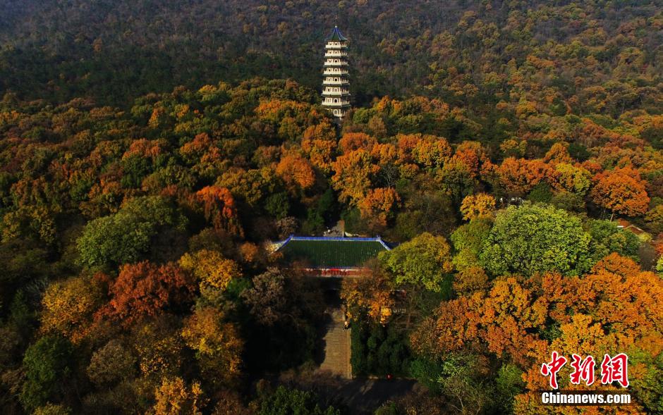 11月26日,俯瞰南京紫金山,今年最后的景色依旧迷人。眼下正是江南秋末初冬时节,伴随着北方冷空气的到来,树叶逐渐凋落,秋景正慢慢褪色,冬天真的到来了。 中新社记者 泱波 摄  11月26日,俯瞰南京紫金山,今