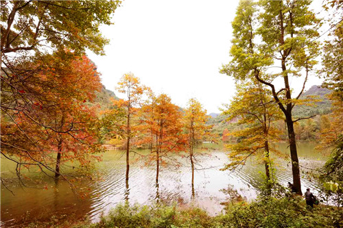 12月6日,游客在广西柳州市融安县泗顶镇马田村都昌屯观赏枫叶。  12月6日,游客在广西柳州市融安县泗顶镇马田村都昌屯观赏枫叶。  12月6日,在广西柳州市融安县泗顶镇马田村都昌屯,摄影爱好者乘橡皮艇拍摄枫