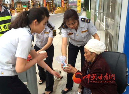 中国甘肃网7月14日讯(通讯员 窦耀辉 杨艳丽)7月12日18时15分,宝天高速公路收费管理所天水西收费站正值车流量高峰,该站当班班长郭婷在出口广场疏导车辆时,突然看见一位年迈的老太太拄着拐杖从宝鸡方向步履蹒跚