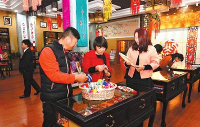 敦煌市陇原巧手馆内的手工艺品吸引游客驻足欣赏。该馆汇集了我省各地手工编织产业的创新成果,借助敦煌丰厚的旅游资源进行展销,推动陇原巧手产品走向广阔的市场。