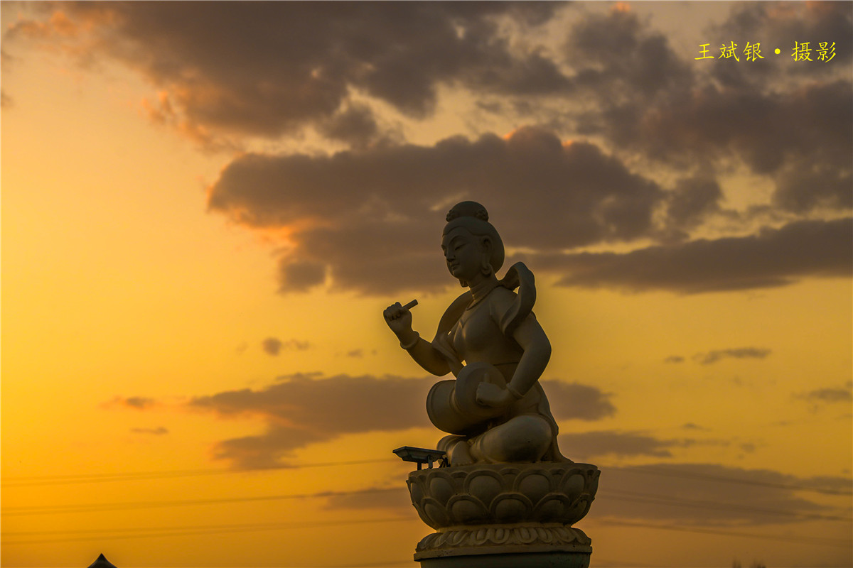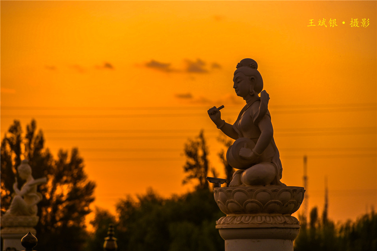 党河风情线披上美丽的霞光。