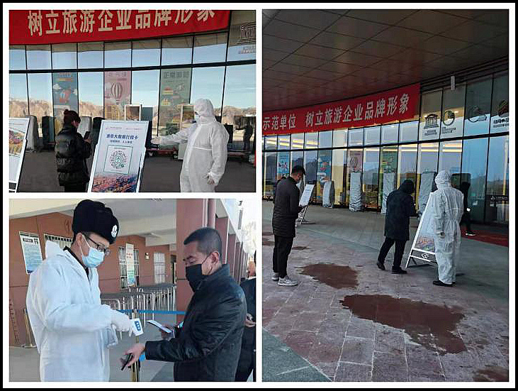 为给游客提供一个安全的游览环境,景区安保人员对游客服务中心、景区卫生设施、各观景台等公共场所每天进行多次消毒,对门把手、免费公共物品等游客接触率较高的基础设施进行经常性擦拭消毒。按照疫情防控要求,景区在入口处设健康码和扫码购票牌,提醒游客提前出示健康码,测量体温、全程配戴口罩、保持安全距离等健康入园方式。严格按照旅游景区疫情防控措施指南,做好疫情防控工作。游客登记处,免费为游客提供免洗手凝胶、75%酒精、一次性口罩等物品,同时设置温馨提示,来自中高风险区的游客填写《游客健康状况登记表》并出具核酸检测证明,全方位抓实疫情防控。