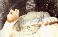 甘谷大象山石窟,位于天水市甘谷县境内距县城五华里处。那里有一座正看如旗,横看似龙的山峦拔地而起 ,旧名文旗,现名大象山。山上松桧丛生,丁香溢彩,亭台楼阁依山而建,雕栋画廊绿树掩映。山中悬崖间,峭壁上有大洞窟一个,洞内坐石胎泥塑大佛一尊。据考证,甘谷塑佛造像可远溯北魏,先后共经历了四个朝代,三千多年。