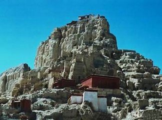 古叠州城遗址在今迭部县城东郊电尕乡然闹村,位于白龙江北岸的台地上,背倚扎尕独山之巅。今迭部县境在南北朝时期为合川县,唐高祖武德二年置叠州,置州前称交戍城,后称叠州城。该城东西长约1000米,南北宽450米,城墙随地形而筑,城廓呈不规则五边形,城内东北部筑有内城。迄今古城残垣断壁犹存,残垣上夹棍眼和夯土层清晰可见。