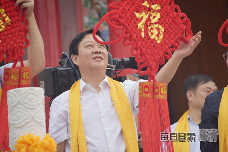 天水市委副书记、市长杨维俊在轩辕祠前恭献中华同心祈福结