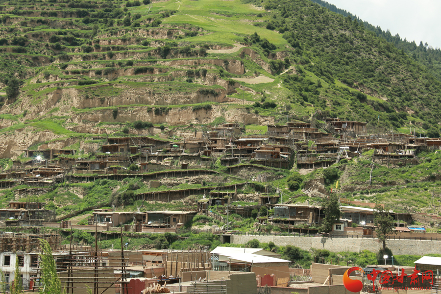 我们的第三站是尼巴百年藏寨长寿村,这里木制的房屋依山而建,错落在山间,已有一百多年。从低到高,户户相连,组合成一个严密壮观的防御整体,两千多户人家住在这个依山而建的苫子房里。本网记者 金琼 摄