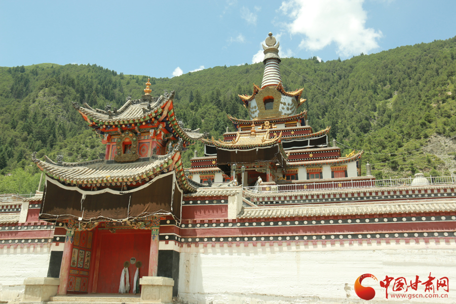该寺院最北端的佛塔比拉卜楞寺的贡唐宝塔还要大,长廊下的转经筒多达1000多个,在卓尼境内首屈一指。本网记者 金琼 摄