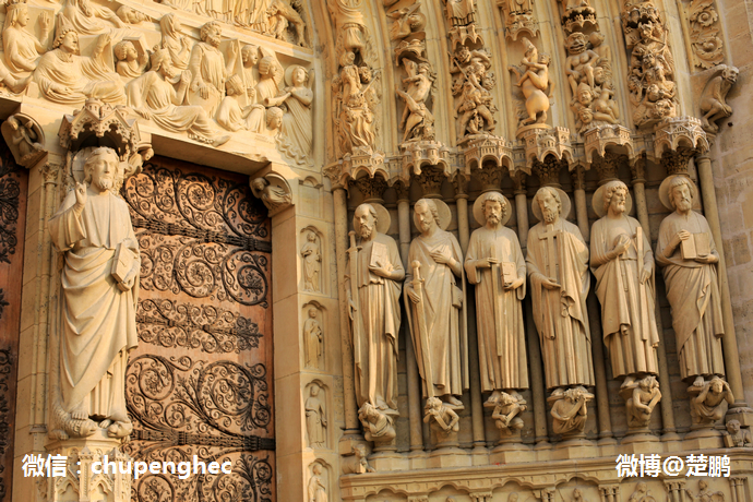 门楣上石刻的诸神栩栩如生,营造出圣人在天空中萦绕的意境。