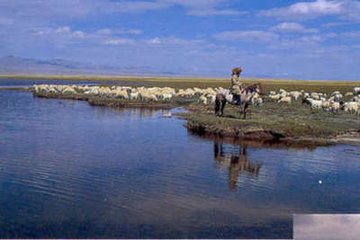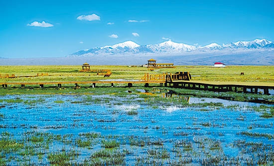 盛夏的阿克塞县苏干湖景区风光迷人。总投资3339万元的苏干湖湿地旅游景区内浮动码头、水塔、餐饮住宿等设施已初具规模。 本报通讯员马晓伟