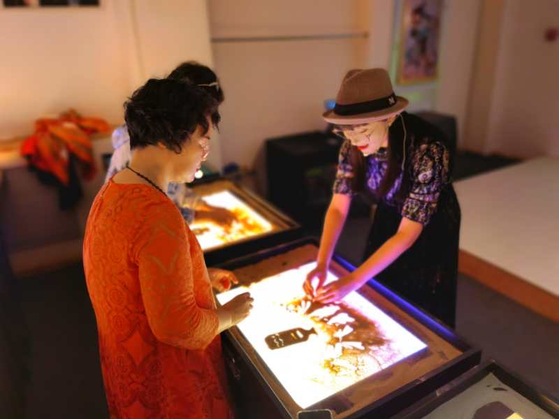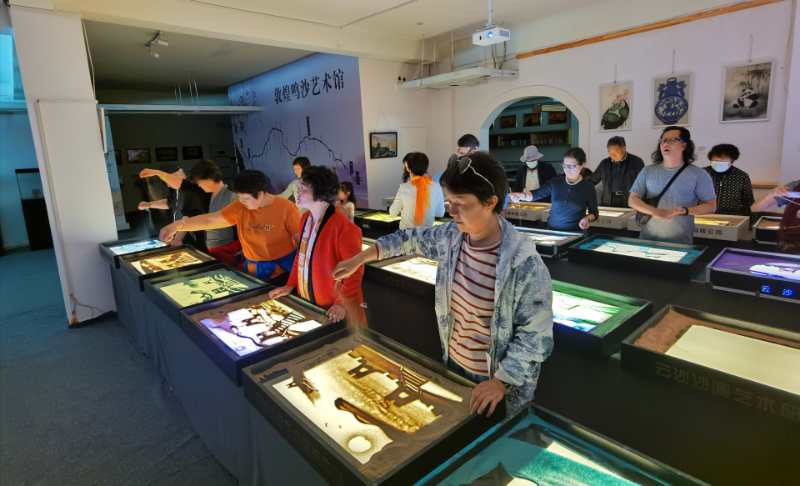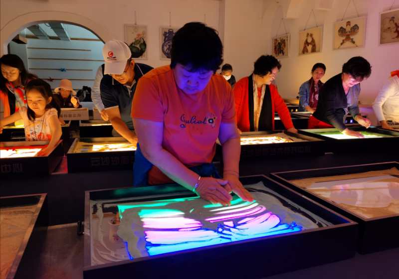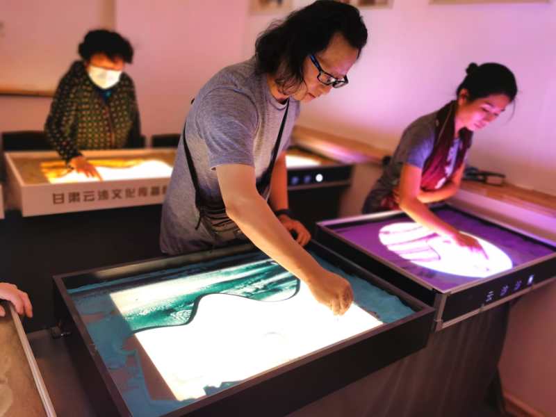 9月22日,敦煌沙文化馆迎来了一批来自北京、上海 、广州 、山东 、 四川等全国各地老年游客共计23人的研学游团队。团员们满怀新鲜和亲切感观看了沙画艺术表演,亲自体验亲手绘制沙画的兴奋和激动,一幅幅惟妙惟肖的沙画作品脱颖而出,让人们忘记了岁月,仿佛走进另一个妙趣横生的童话世界。老人们把自己第一次绘制的沙画作品拍下来,和自己绘制的沙画作品合影,分享给远方的亲人、朋友,这是一种莫大的快乐,这是他们此次来敦煌研学游最大的收获。