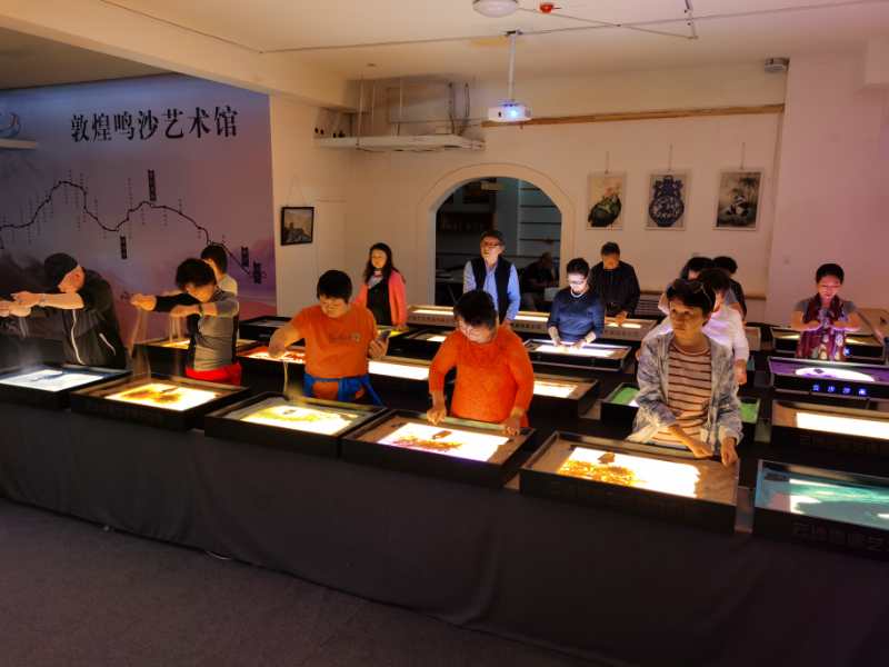 入住敦煌月牙泉小镇2年时光的敦煌沙画研学游新产品,几经打造、磨合、完善、与市场接轨,扩大沙画的对外宣传,提高沙画在文化旅游市场上的知晓度。经过一年多的资源整合,装修改造,引进人才,敦煌沙文化馆装饰一新,敦煌沙画艺术产品逐步完善,被广大研学游学员接受并喜爱。
